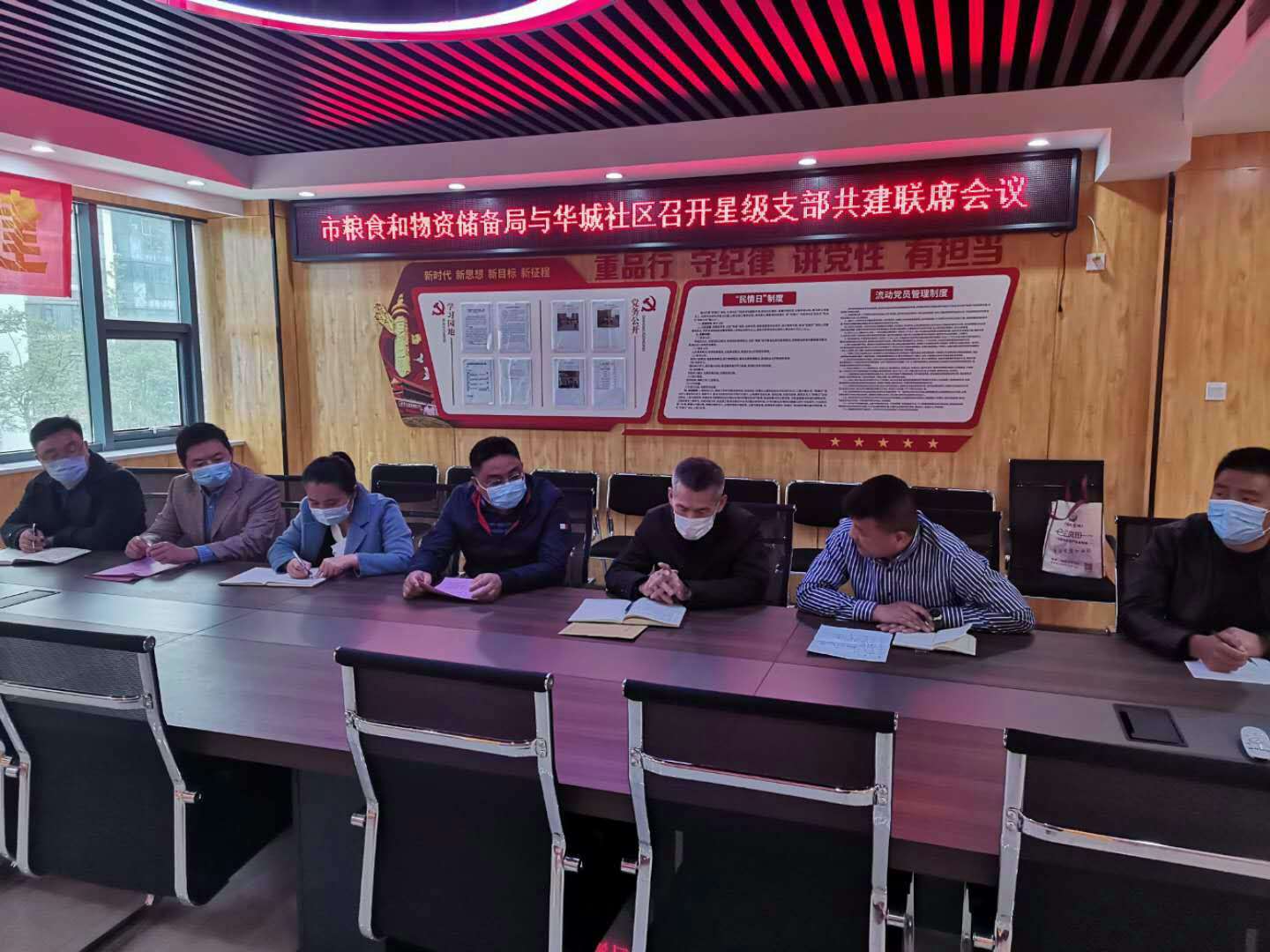 4月21日下午,市粮食和物资储备局与华城社区共建星级支部联席会议在社区党群服务中心召开。市粮食和物资储备局直属机关党委有关负责同志、各党支部书记及有关人员参加了会议。会议总结了2019年度 “双报到”工作,对2020年度星级支部创建,共驻共建项目清单等内容进行了沟通协商。社区党支部书记姜兆印同志介绍了社区2020年度的工作打算,双方就共驻共建工作进行探讨交流,会后在社区进行了消防安全知识宣传。