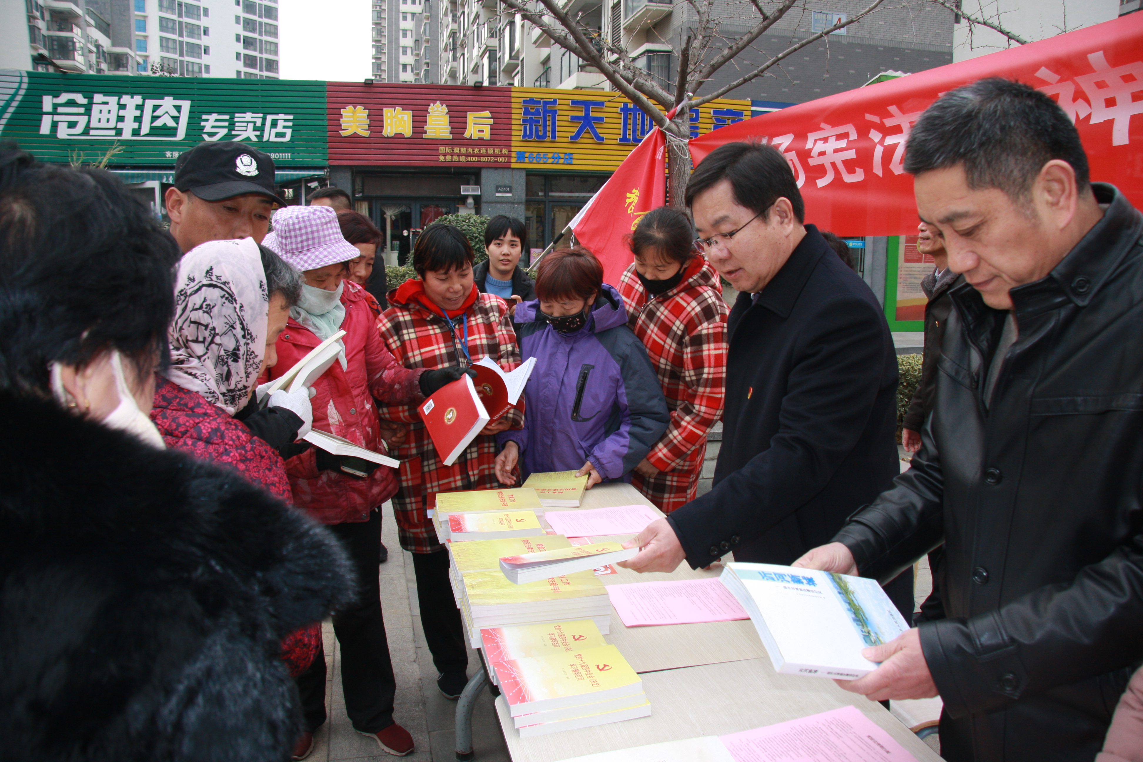 为深入学习贯彻党的十八届四中全会精神,实现“依法治国”构建法治社会的目标,按照市委宣传部、市委依法治市办、市司法局统一部署,2019年11月29日,市粮食和物资储备局在兰山区金泰·华城熙园社区开展了“弘扬宪法精神,推进法治临沂建设”为主题的宪法及相关法律法规的普及宣传活动。