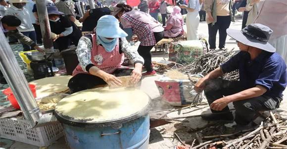 活动现场,群鏊献饼——摊煎饼大赛热火朝天,随着主持人一声令下,二十余名“摊煎饼”选手激情开赛,由评委根据摊制煎饼的数量、破损率、口感、外观进行打分,最终评选出一、二、三等奖。