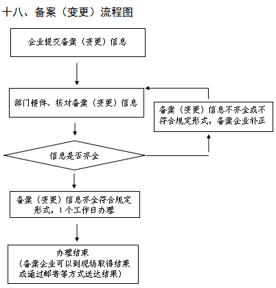 1.企业提交的备案(变更)材料齐全、符合法定形式的,备案办理部门应在1个工作日内完成备案,并将《山东省粮食收购企业备案表》一份送达备案企业,一份由备案办理部门存档;
