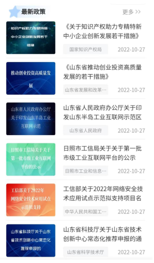 在最新政策区,按照政策发布的时间顺序,依次罗列平台最新收录的政策。