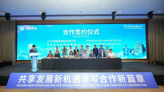 在2025新加坡山东周“齐鲁粮油”品牌海外推介会”上,局党组书记、局长宋成明携金胜、玉皇和青援等企业远下南洋、亮相狮城,玉皇从企业发展历程、科技研发、产业板块、优势产品等方面上台推介,展现了“沂蒙花生油”的卓越品质与无限潜力,金胜携带的高油酸花生油等产品吸引了众多新加坡民众和企业前来了解、洽谈。活动中,玉皇与新加坡客商达成合作并现场签约,金胜与客商达成初步合作意向,推介会取得丰硕成果。