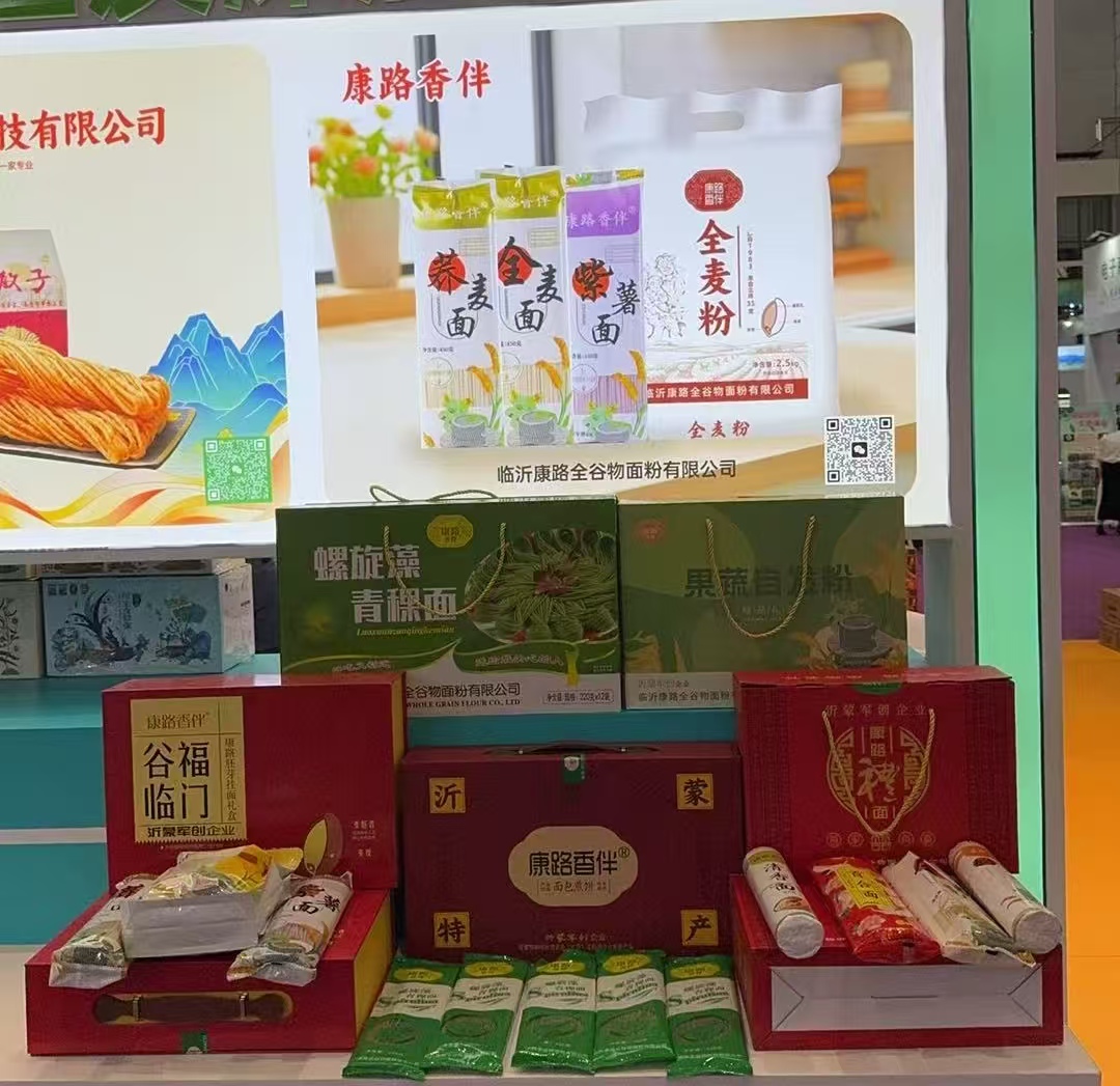 在山东(国际)农产品交易会上,临沂康路全谷物面粉有限公司健康养生面粉及面条系列产品吸引了百余名省内外客商洽谈交流,其中,企业自主研发的有机面粉、果蔬自发粉、螺旋藻青稞面条等新产品广受好评。交易会期间累计签订产品订单16份,订单金额近600万元。