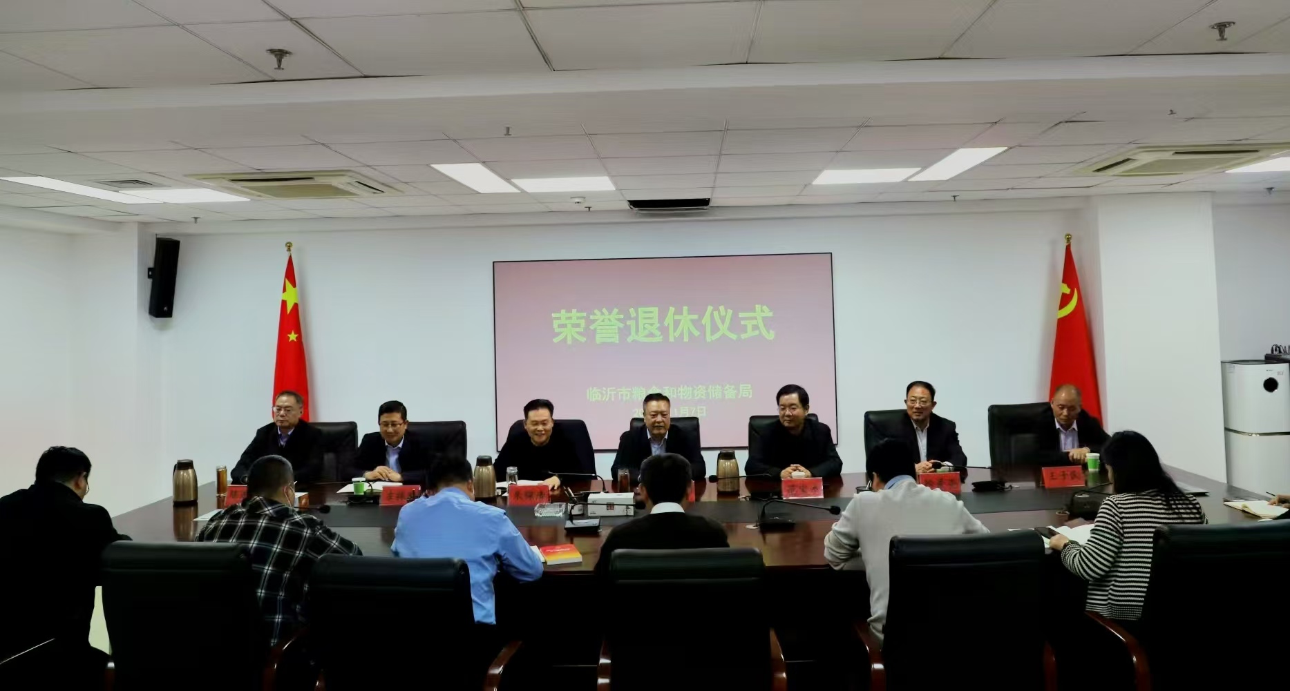 为认真落实干部荣誉退休制度,切实加强对退休干部的关心关怀,增强干部退休的荣誉感、仪式感和归属感,11月7日,市粮食和物资储备局为2025年退休的干部范宝杰、徐景亮、王子民三位同志举行荣誉退休仪式。市粮食和物资储备局党组书记、局长宋成明出席仪式并讲话,局党组成员、副局长朱佩清主持仪式。市粮食和物资储备局班子成员,局机关及市物资储备和军粮供应中心中层正职干部参加。