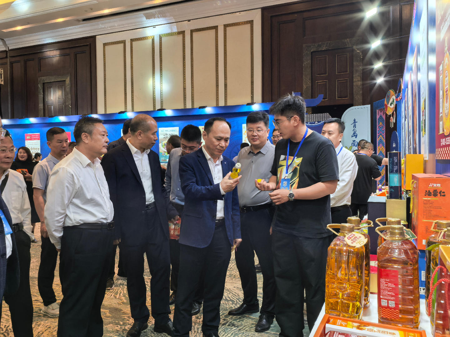 活动现场,山东、海南两省粮食和物资储备局及海南山东商会有关领导莅临我市展位,深入了解企业产品研发、品牌建设等有关情况,并给予充分肯定;海南客商对我市参展的高油酸花生油、玉米甘油二酯油、杂粮挂面等健康类粮油产品和沂蒙煎饼、大黄米汤圆等食品兴趣浓厚,纷纷驻足品鉴,交流洽谈。临沂农业发展集团有限公司与海南海垦果蔬生鲜贸易有限公司现场签署了合作协议,玉皇与海南省粮食和物资储备集团达成合作。