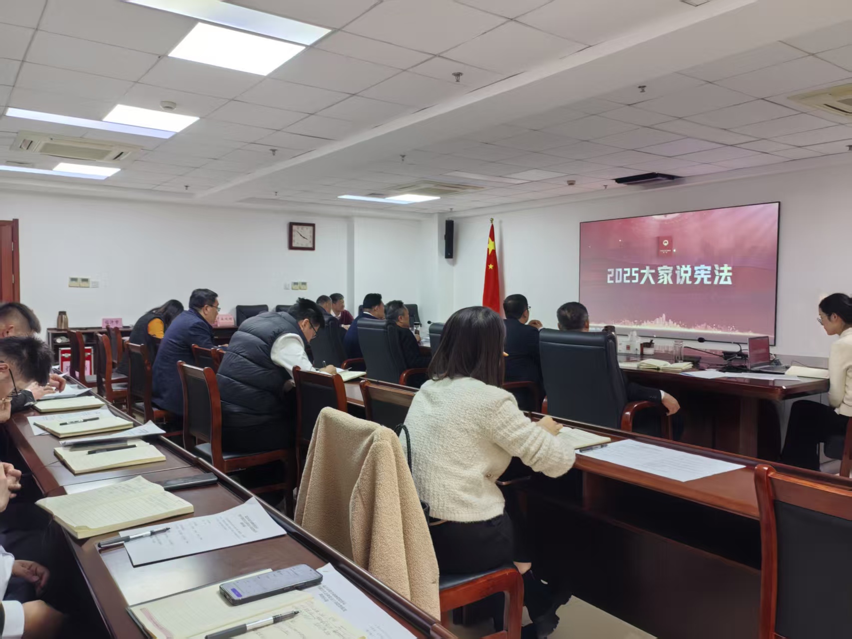 今年12月4日是第十二个国家宪法日,12月1日至7日是全国第八个“宪法宣传周”,12月份是第九个山东省法制宣传教育月,为深入学习宣传贯彻习近平法治思想,扎实推动宪法精神落地生根、深入人心,12月4日,市粮食和物资储备局组织开展“国家宪法日”专题学习。