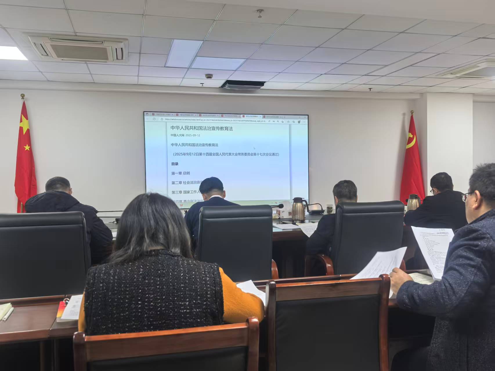 局党组书记、局长宋成明围绕国家宪法日主题,结合粮食和物资储备工作实际,为全体干部职工作专题法治授课。授课采取系统研学、视频教学、交流研讨相结合的形式,组织深入学习《中共中央关于制定国民经济和社会发展第十五个五年规划的建议》《中华人民共和国法治宣传教育法》,集中观看宪法专题宣教视频,并开展学习感悟交流研讨,引导全体干部职工深刻领会宪法的核心要义、精神实质与实践要求,切实强化宪法意识和法治观念,不断提升运用法治思维和法治方式开展工作的思想自觉与行动自觉。