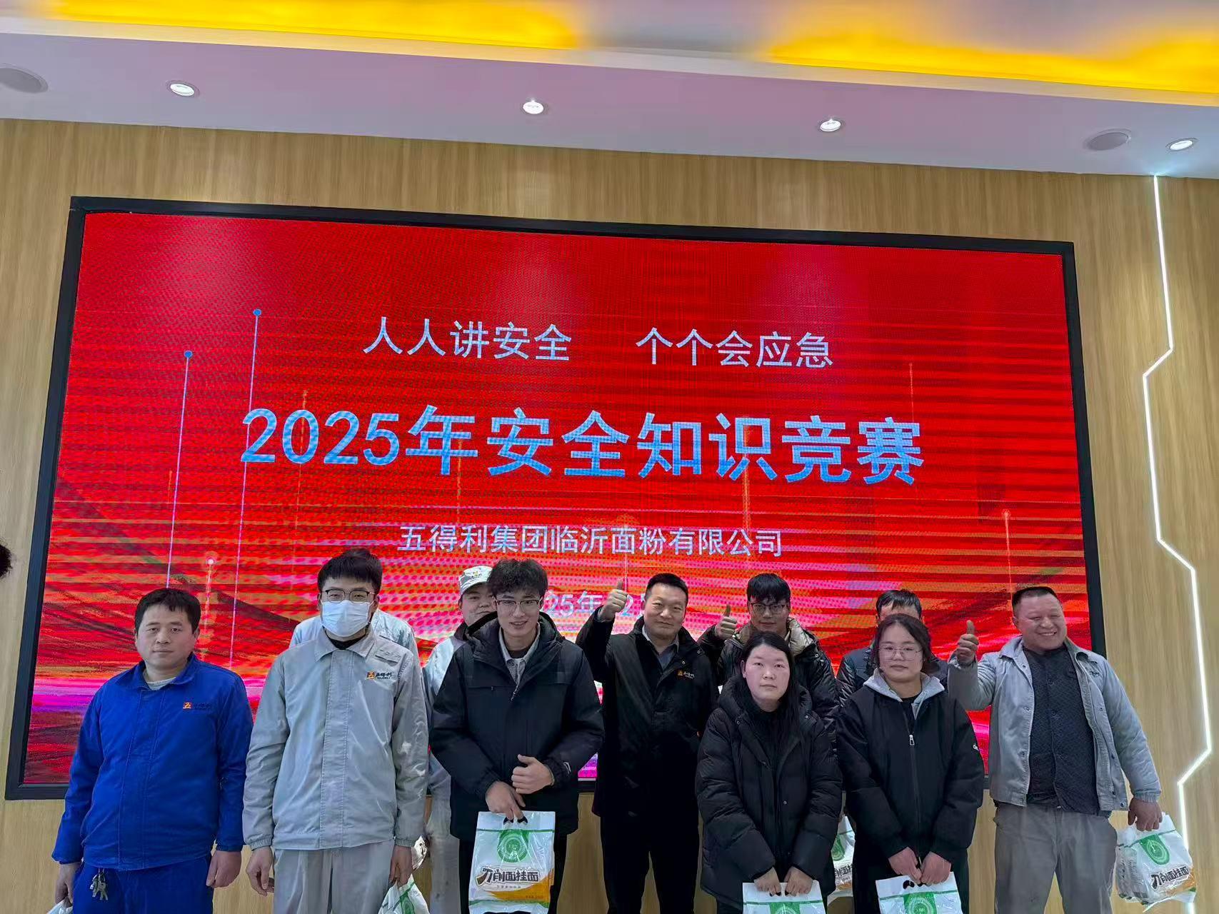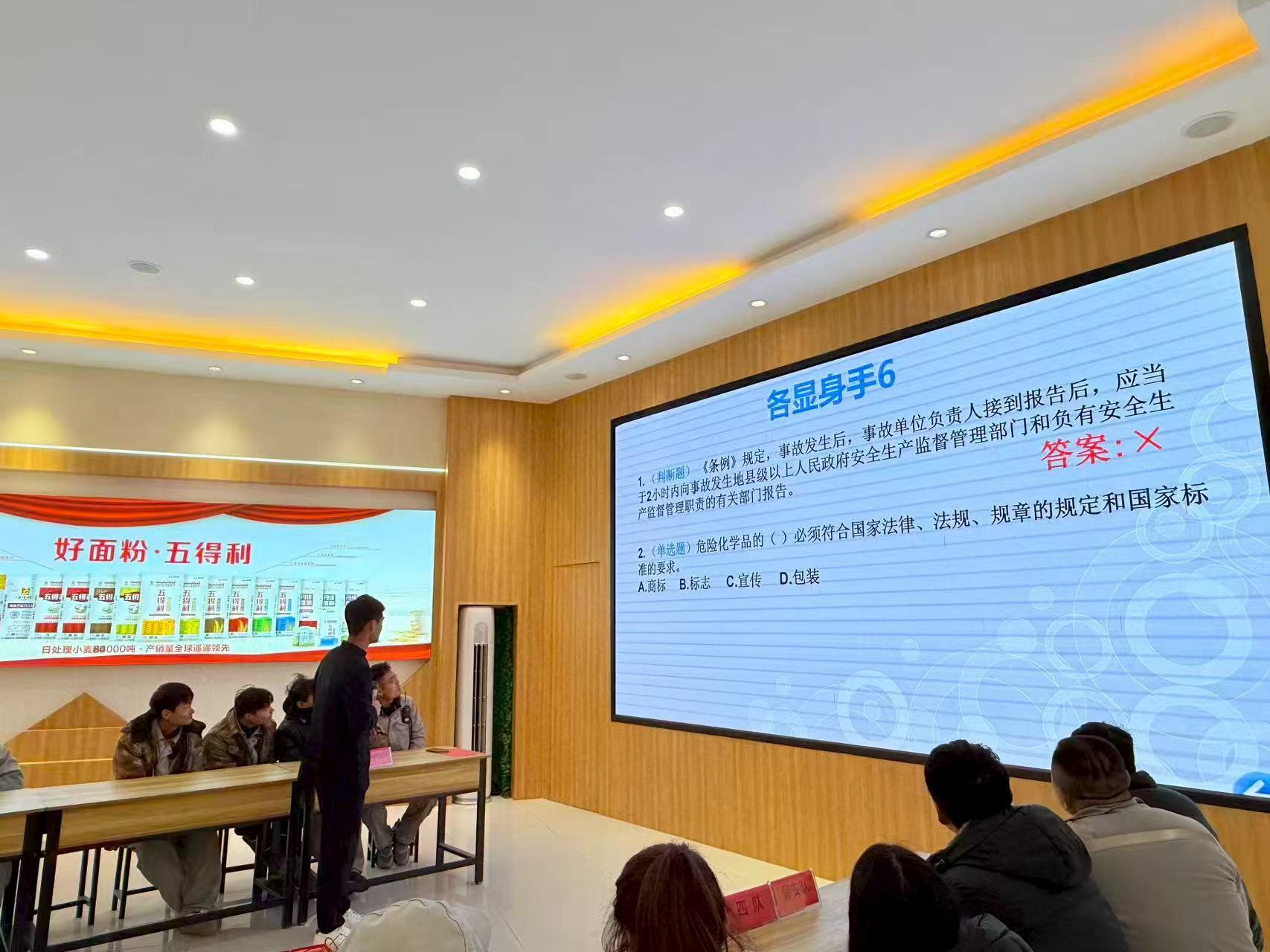 为深入贯彻落实安全生产工作有关部署要求,牢固树立“安全第一、预防为主、综合治理”的安全理念,切实提升企业全员安全知识储备与应急处置能力,近日,五得利集团临沂面粉有限公司组织开展“人人讲安全 个个会应急”安全生产知识竞赛。