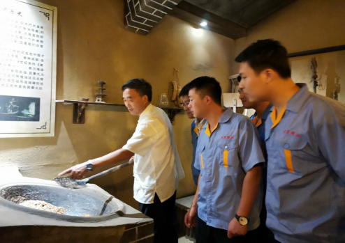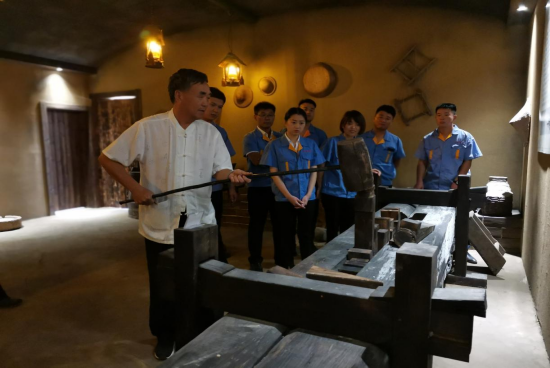 第四代传承人张守民在向员工讲授“技榨”工段技艺