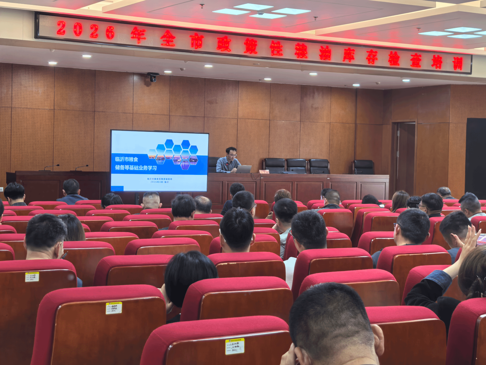 为扎实推进2026年全市政策性粮油库存检查工作,全面提升检查队伍专业素养与监管履职能力,4月27日,临沂市粮食和物资储备局开展全市政策性粮油库存检查专题培训。市粮食和储备局副局长季文卿作动员讲话。