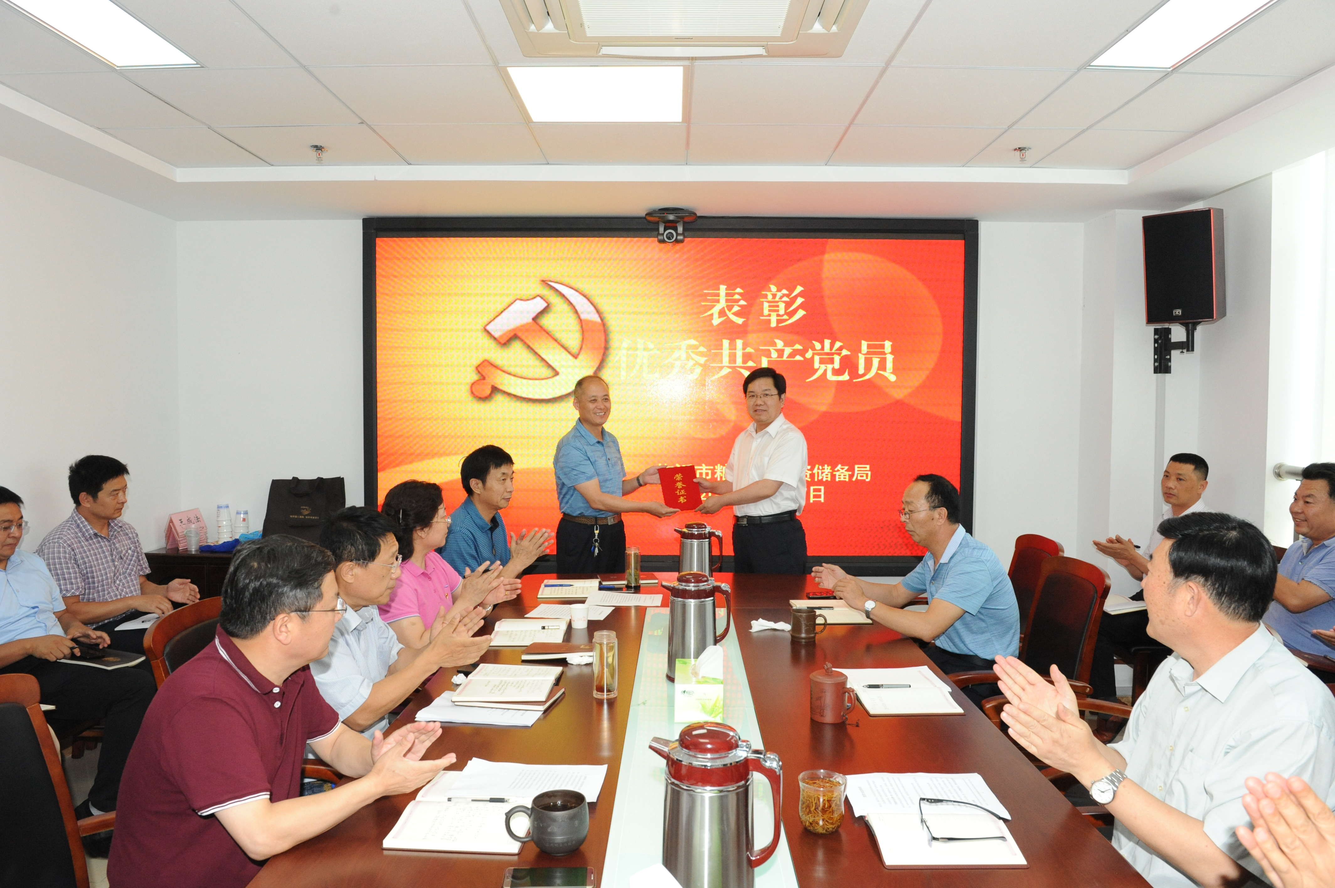 七一临近之际,6月27日下午,市粮食和物资储备局召开党员大会,对在2018年度表现优异的基层党支部和优秀共产党员进行了表彰。