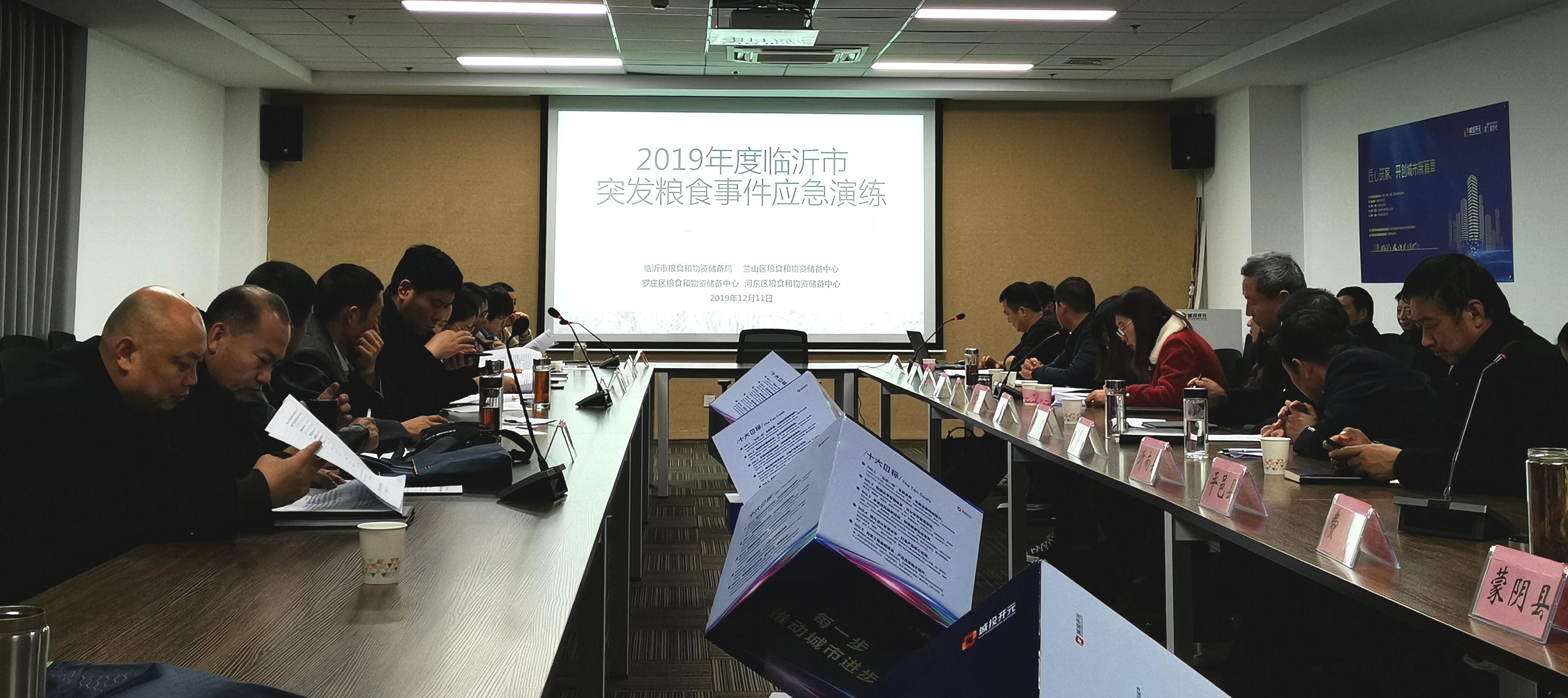 会上,首先培训学习了《临沂市粮食安全风险防控应急预案》相关知识。随后联合县区工作人员,采取情景模拟演示与角色推演相结合的形式开展了2019年临沂市突发粮食事件应急演练。演练背景假设为11月初以来,在例行粮食质量抽检中发现,我市多家面粉加工企业所采购的外省原料小麦,呕吐毒素严重超标,有关部门随即对该批次问题小麦进行了封存,受此事件影响,临沂市有关加工企业处于停产状态,城区内面粉供应量大幅减少,粮食市场供需矛盾逐渐突出,价格持续上涨,尤其在部分县区,出现了居民和社会团体集中大量抢购面粉和大米,粮食零售企业面粉、大米断档脱销等现象,并呈现继续蔓延和扩大的趋势。为有效应对此类突发事件,根据市粮食应急工作指挥部提请,经报市政府批准,决定启动《临沂市粮食安全风险防控应急预案》。