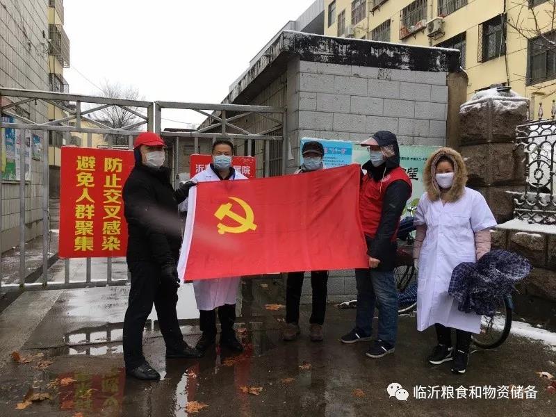 自疫情发生以来,市粮食和物资储备局坚决贯彻落实习近平总书记重要指示精神,在市委、市政府的正确领导下,迅速安排干部职工投入到这场疫情防控阻击战中。在这疫情防控最前沿,党员干部风雪无阻,坚守岗位,严格按照要求执行出入登记核查制度,测体温,喷洒消毒液,把好每一关,真正让党旗高高飘扬在疫情防控工作第一线。