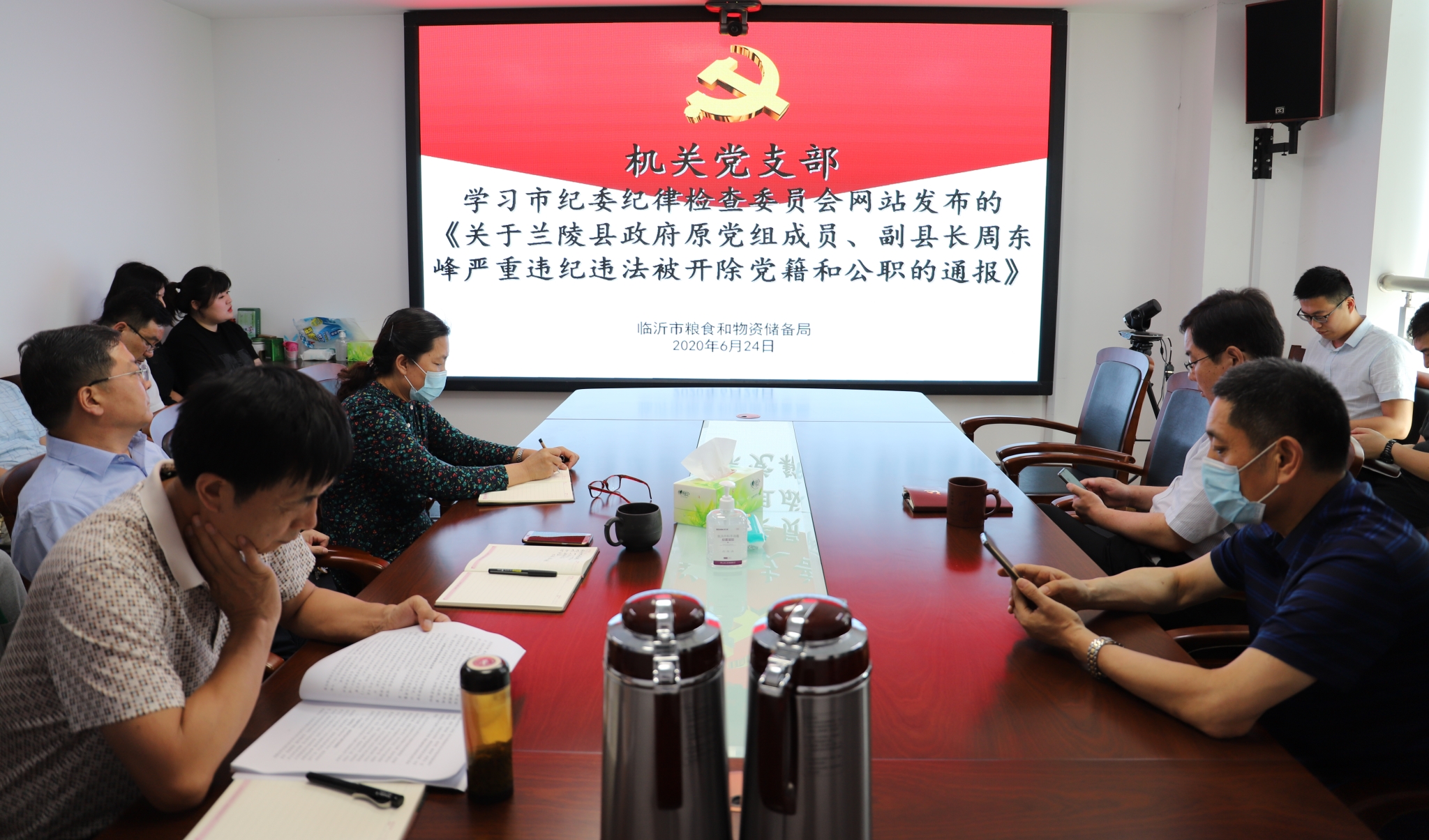 6月24日下午,临沂市粮食和物资储备局机关党支部按要求组织全体党员学习了市纪委纪律检查委员会网站发布的《关于兰陵县政府原党组成员、副县长周东峰严重违纪违法被开除党籍和公职的通报》。