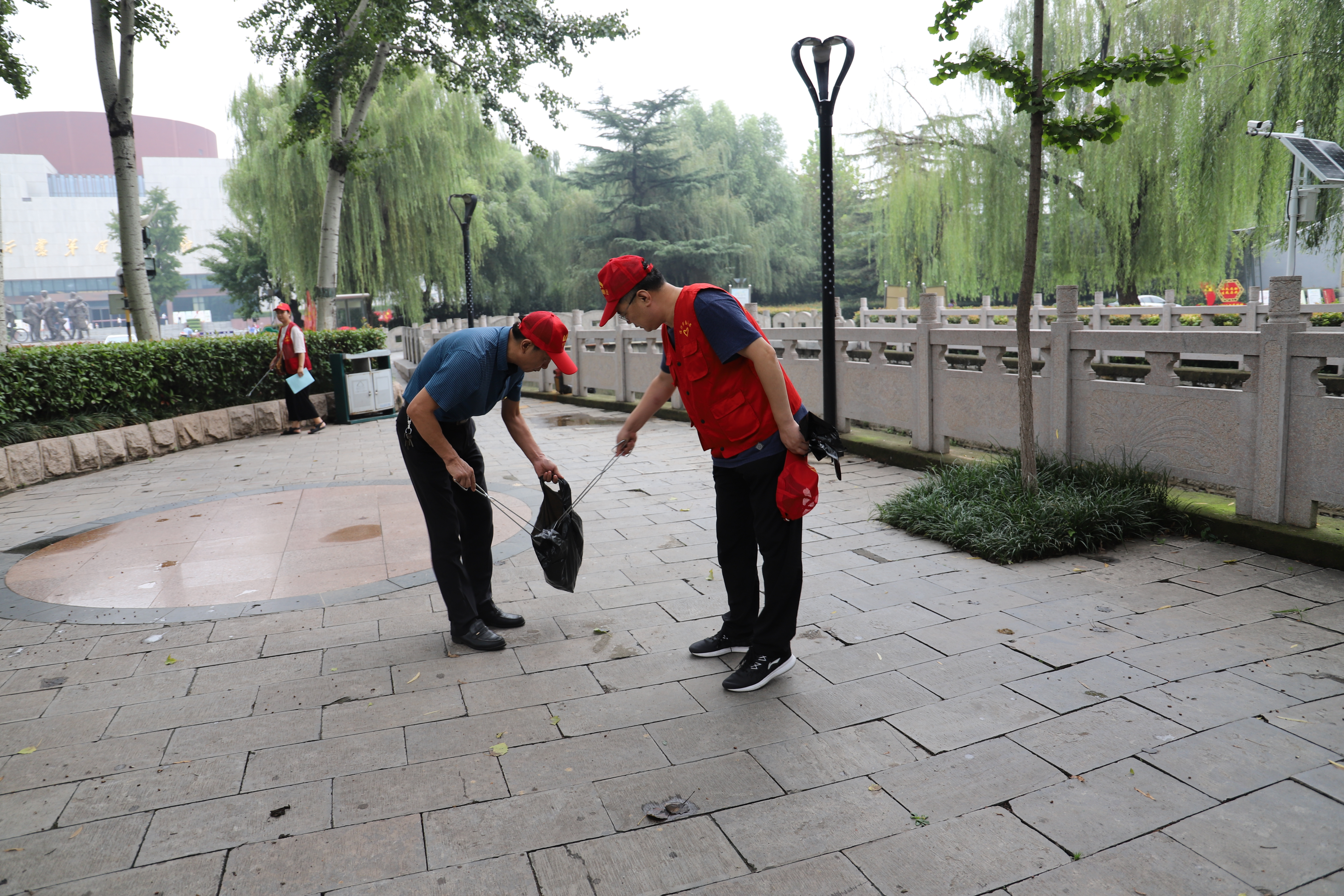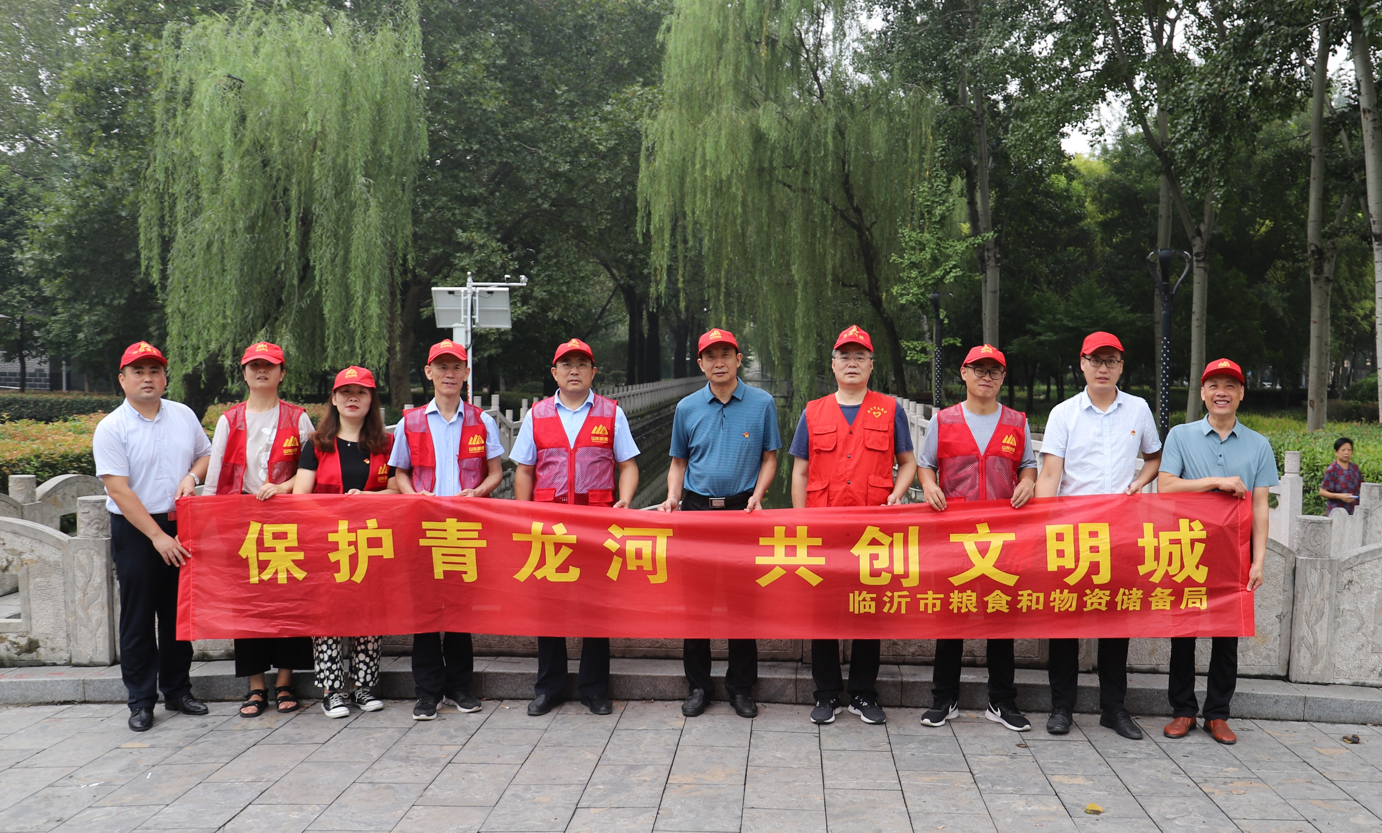 青龙河积淀着琅琊古郡的悠久历史,见证着临沂新城的繁荣发展。为提高青龙河水环境综合整治效果,创造优良人居环境,9月10日,临沂市粮食和物资储备局组织局机关全体党员,到青龙河畔开展“保护青龙河 共创文明城”志愿服务。志愿者冒着迷濛细雨,沿着绿树成行的河岸,热情地向过往行人发放宣传彩页,大力宣讲保护青龙河的重要意义,同时志愿者还自备卫生工具,认真捡拾河边树下的生活垃圾,清理卫生死角。