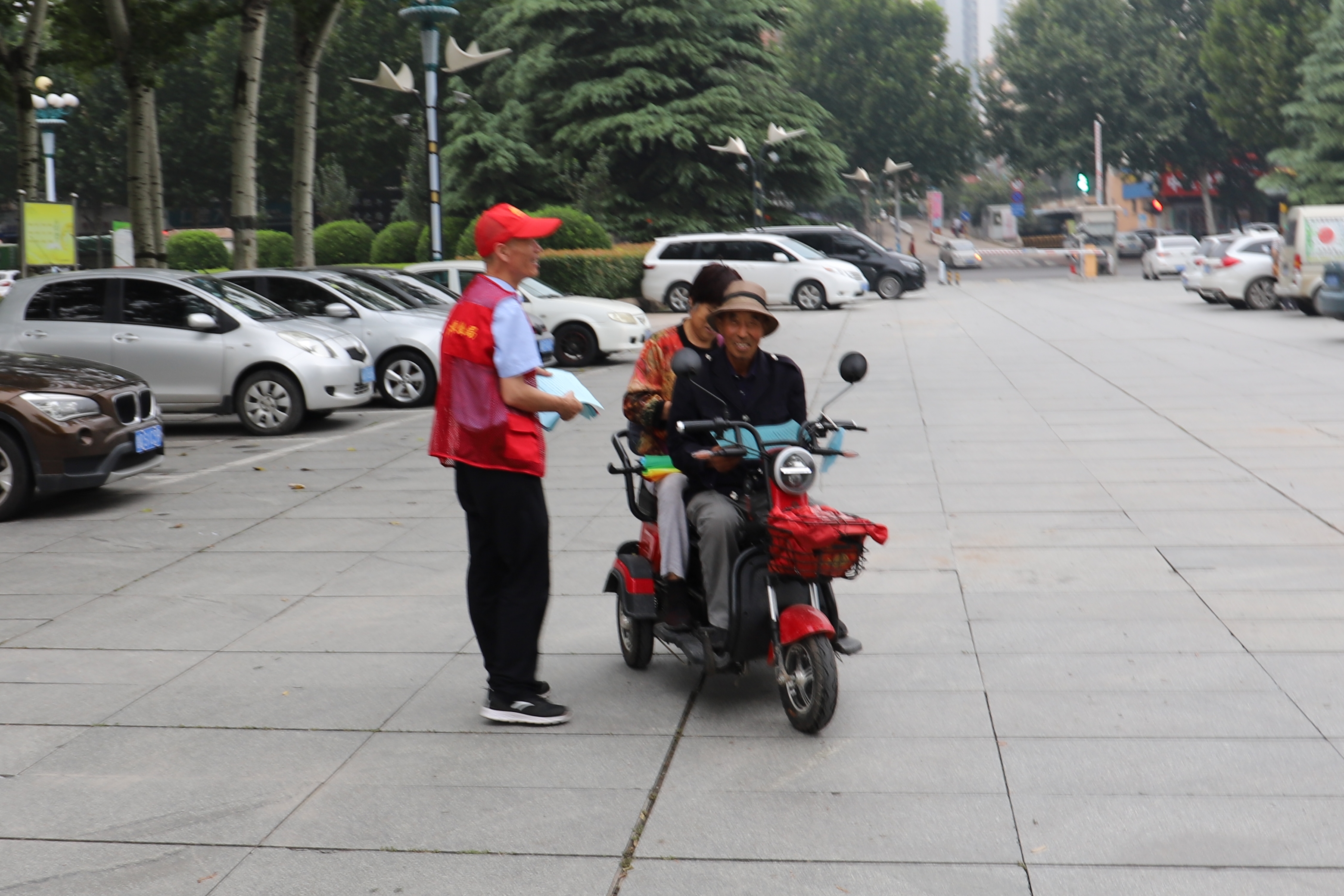 活动中,志愿者们在街道路口及停车场附近,向周围民众发放《临沂市文明促进条例》《临沂市文明出行公约》等宣传材料,通过现场讲解,为周围群众做好文明出行、低碳出行以及“一盔一带”安全出行的宣传引导。