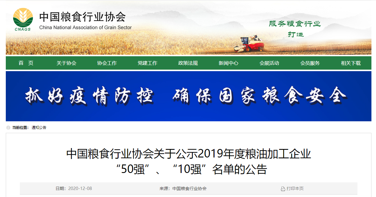 2020年12月8日,中国粮食行业协会《关于公示2019年度粮油加工企业“50强”、“10强”名单的公告》显示,我市金胜、兴泉、玉皇等3家企业再度入围,山东金胜粮油食品有限公司、山东兴泉油脂有限公司、山东玉皇粮油食品有限公司进入食用油加工企业“50强”;山东金胜粮油食品有限公司、山东兴泉油脂有限公司、山东玉皇粮油食品有限公司进入花生油加工企业“10强”;山东玉皇粮油食品有限公司、山东兴泉油脂有限公司进入玉米油加工企业“10强”;山东金胜粮油食品有限公司进入葵花籽油加工企业“10强”。我市食用油加工企业取得的荣誉,为我市粮油区域品牌——“沂蒙花生油”再添亮点。
