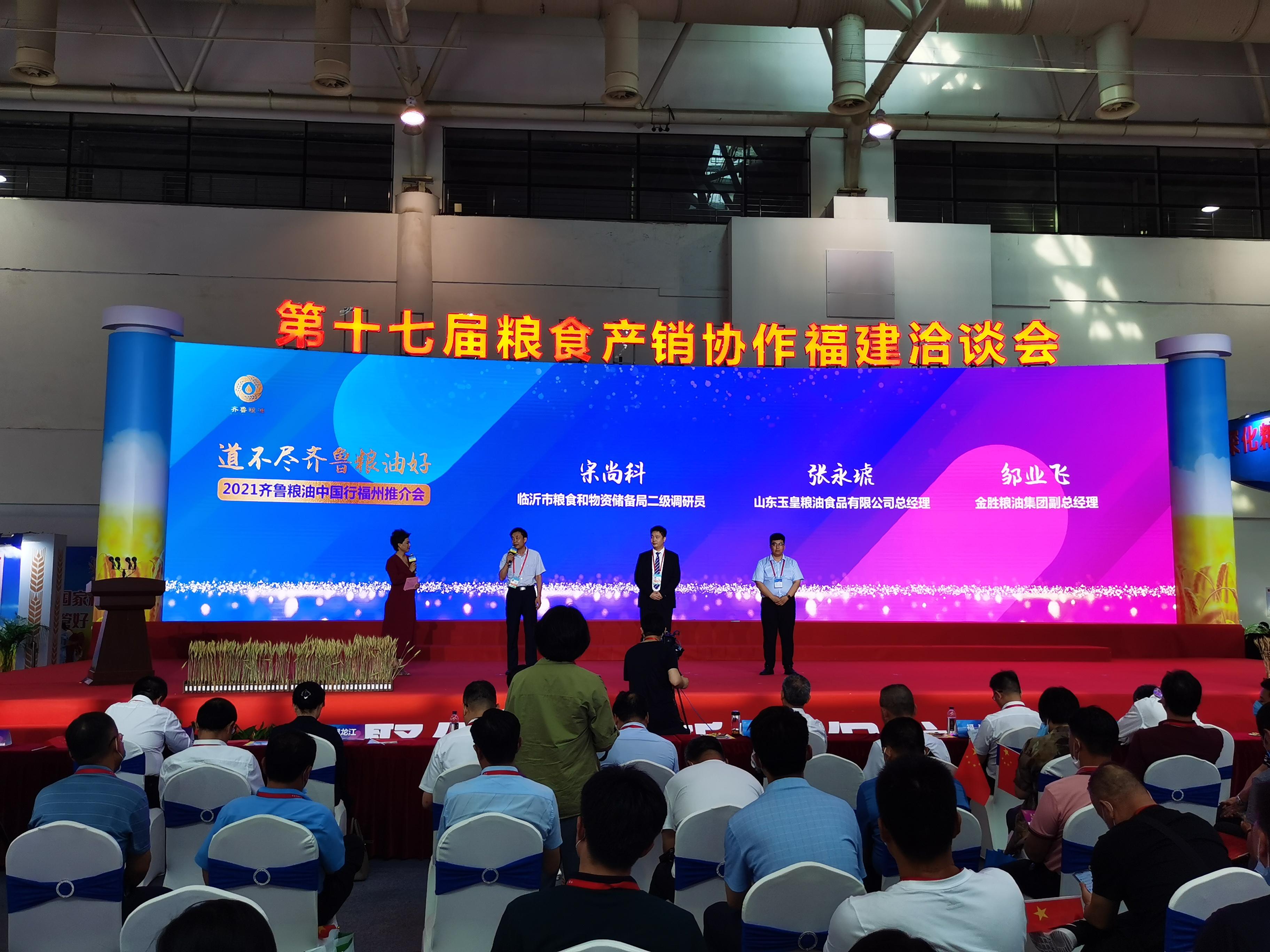 2021年6月18日,第十七届粮食产销协作福建洽谈会在福州开幕,由山东省粮食和物资储备局主办的“齐鲁粮油”福州推介会活动同期举办。我市组织6家“中国好粮油”企业参会参展,金胜、玉皇两家企业参加集体签约,并受邀参加“齐鲁粮油”推介活动,期间拜访了福州市油脂公司、福州新德食品有限公司。