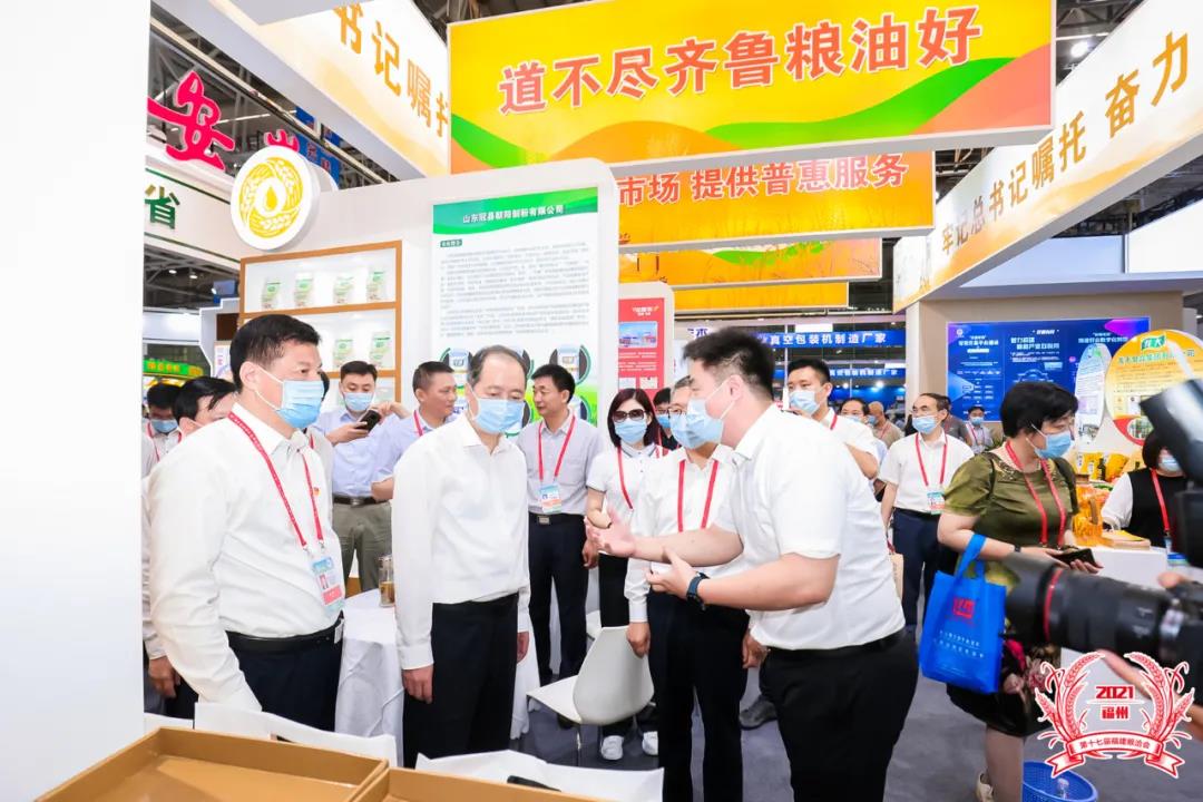 本届洽谈会云集了上百种经认定的“中国好粮油”品牌,参展粮油产品种类丰富、精品汇聚。福建省常务副省长郑新聪,山东省粮食和物资储备局副局长刘开田等领导莅临我市粮油企业展位,对玉皇、金胜、兴泉等高端花生油产品进行了品鉴,各参展商、采购商对我市粮油产品给予高度评价。推介会上,宋尚科同志对我市花生油料生产、加工情况作了介绍,发出了全国每消费8桶花生油就有1桶产自临沂的广告宣传。同时表示,“十四五”时期,我市将突出“三链协同”,实施“五优联动”,加快建设花生产业融合发展示范区,把标准化种植、绿色精深加工、花生物流贸易、数字化新基建、农业休闲观光融为一体,做大做强做优花生产业,成为我省打造“中国食用植物油田”的先行者,把临沂建成我国重要的花生油大油田,擦亮“沂蒙花生油”这一区域品牌,为广大消费者奉献生态、绿色、健康、营养、美味的沂蒙优质好粮油。我市山东玉皇粮油食品有限公司总经理张永琥、山东金胜粮油食品有限公司副总经理邹业飞对企业和产品进行了推介。