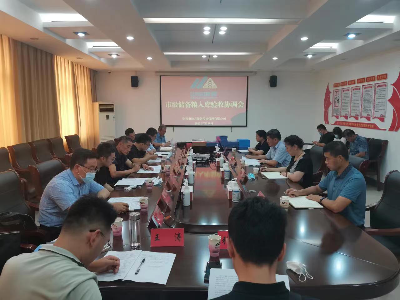 7月19日上午,临沂市市级储备粮轮换领导小组办公室召开市级储备粮入库验收协调会议。市发展改革委、市粮食和物资储备局、市财政局和农发行临沂市分行等四部门对2022年度市级储备粮入库情况进行了实地检查验收。