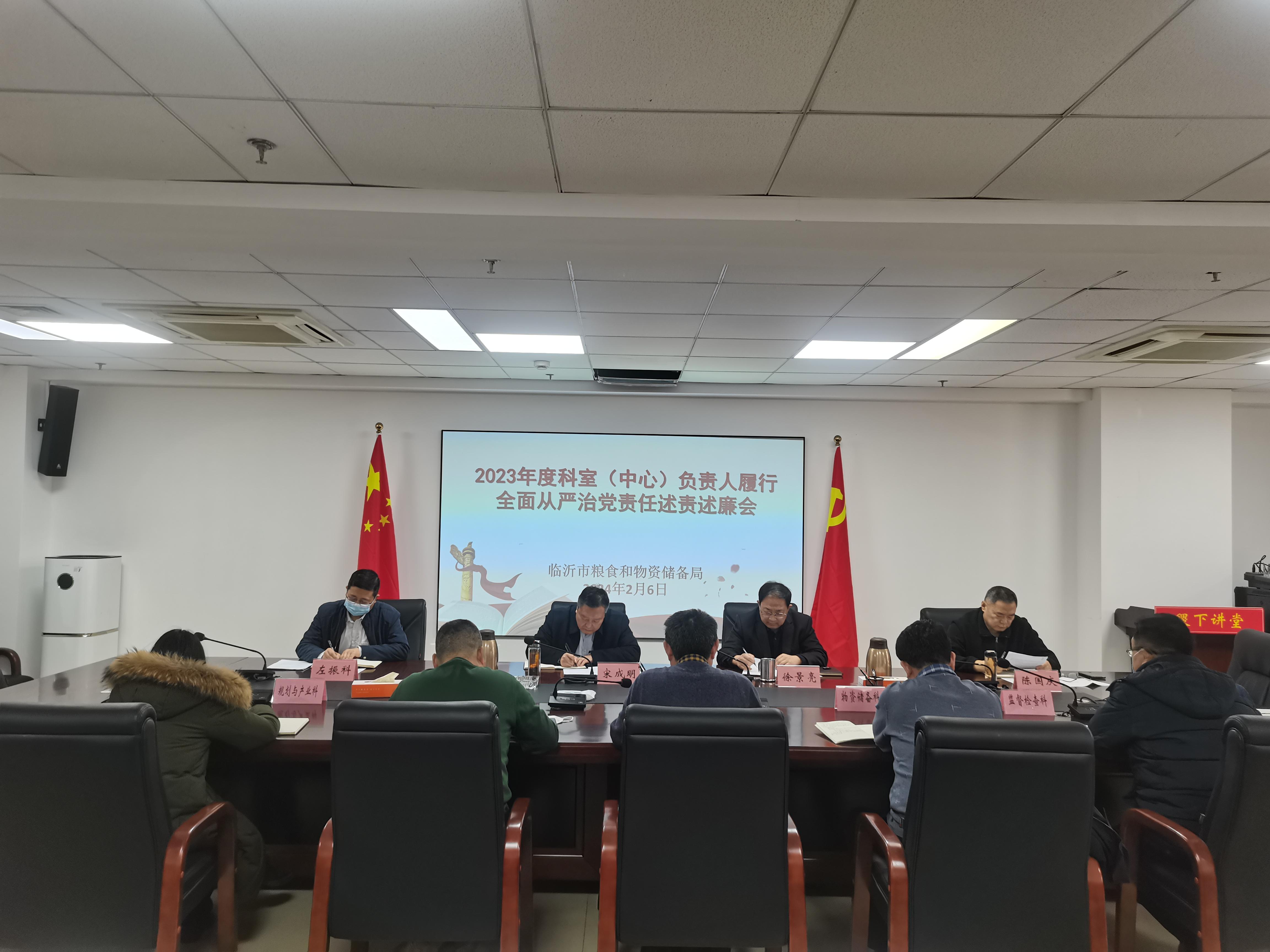 2月6日,市粮食和物资储备局召开2023年度科室(中心)负责人履行全面从严治党述责述廉会,党组成员、各科室中心负责人参加会议。