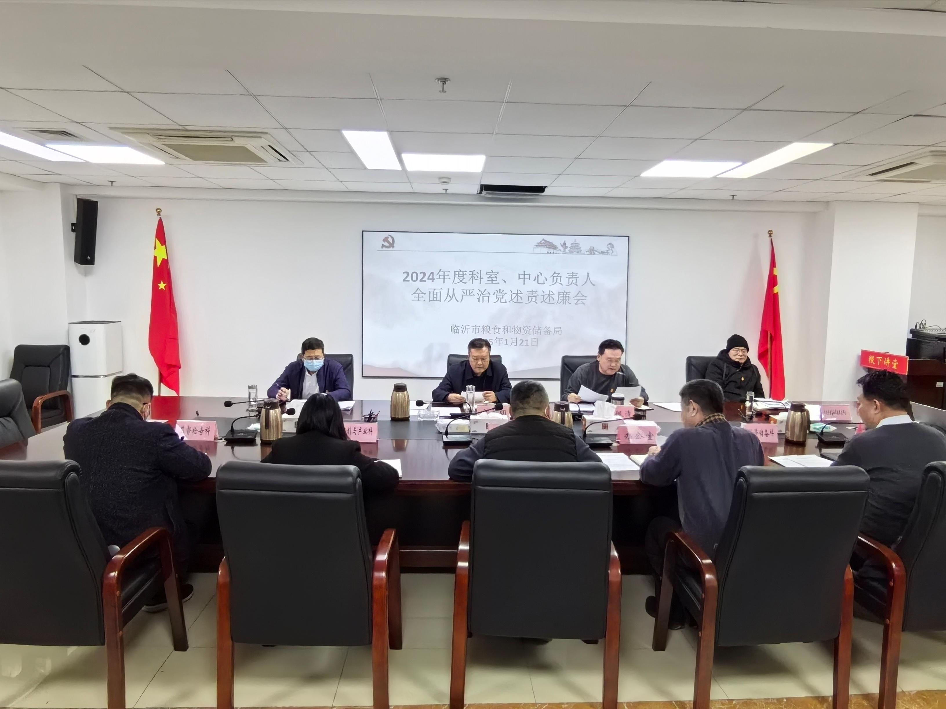 为持续推进全面从严治党向纵深发展,1月22日,市粮食和物资储备局召开2024年度科室、中心负责人履行全面从严治党责任述责述廉会,党组成员及各科室、中心负责人参加会议。