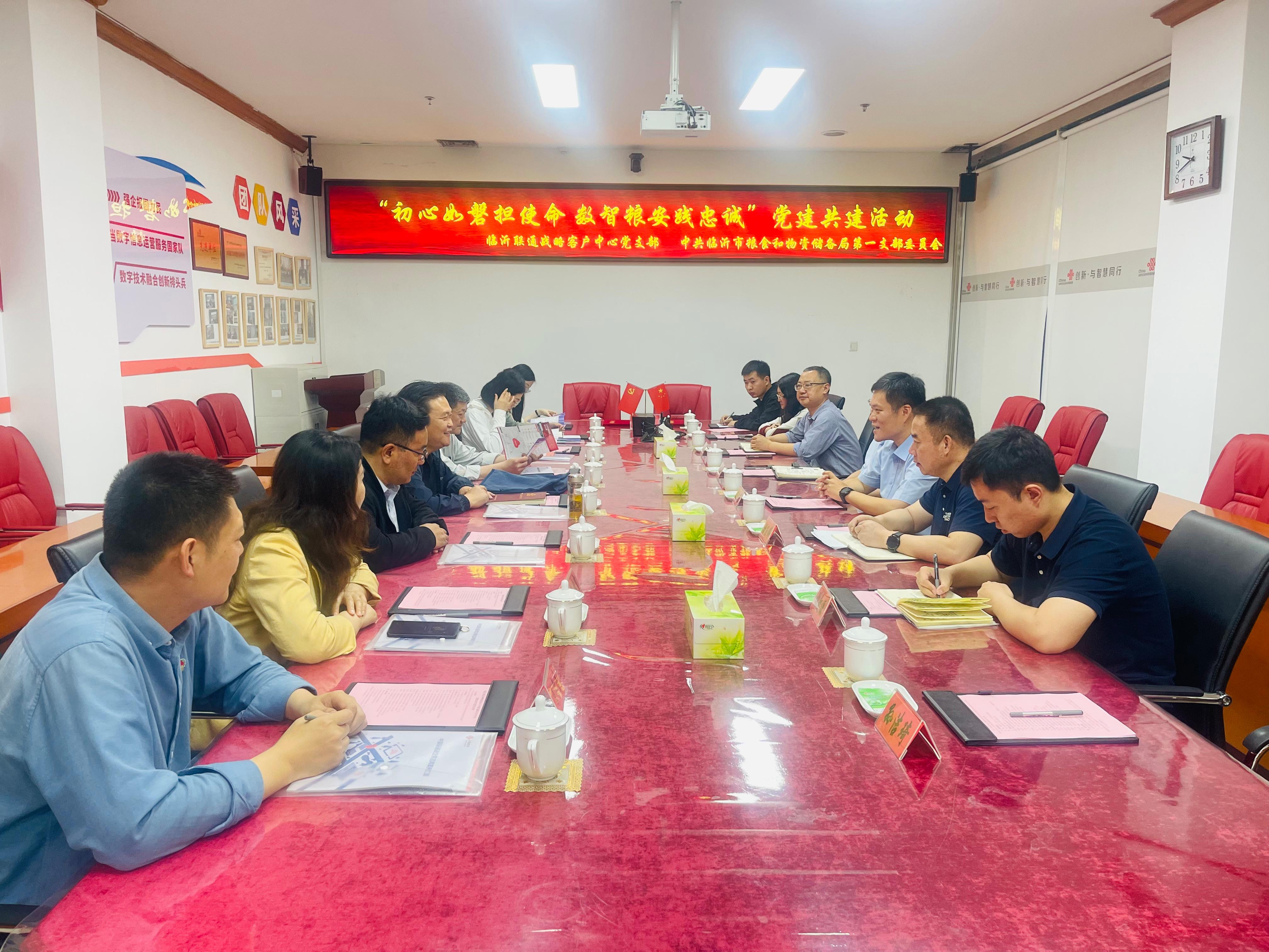 2025年5月23日,市粮食和物资储备局第一党支部组织党员到中国联通临沂市分公司开展“初心如磐担使命 数智粮安践忠诚”党建共建活动。