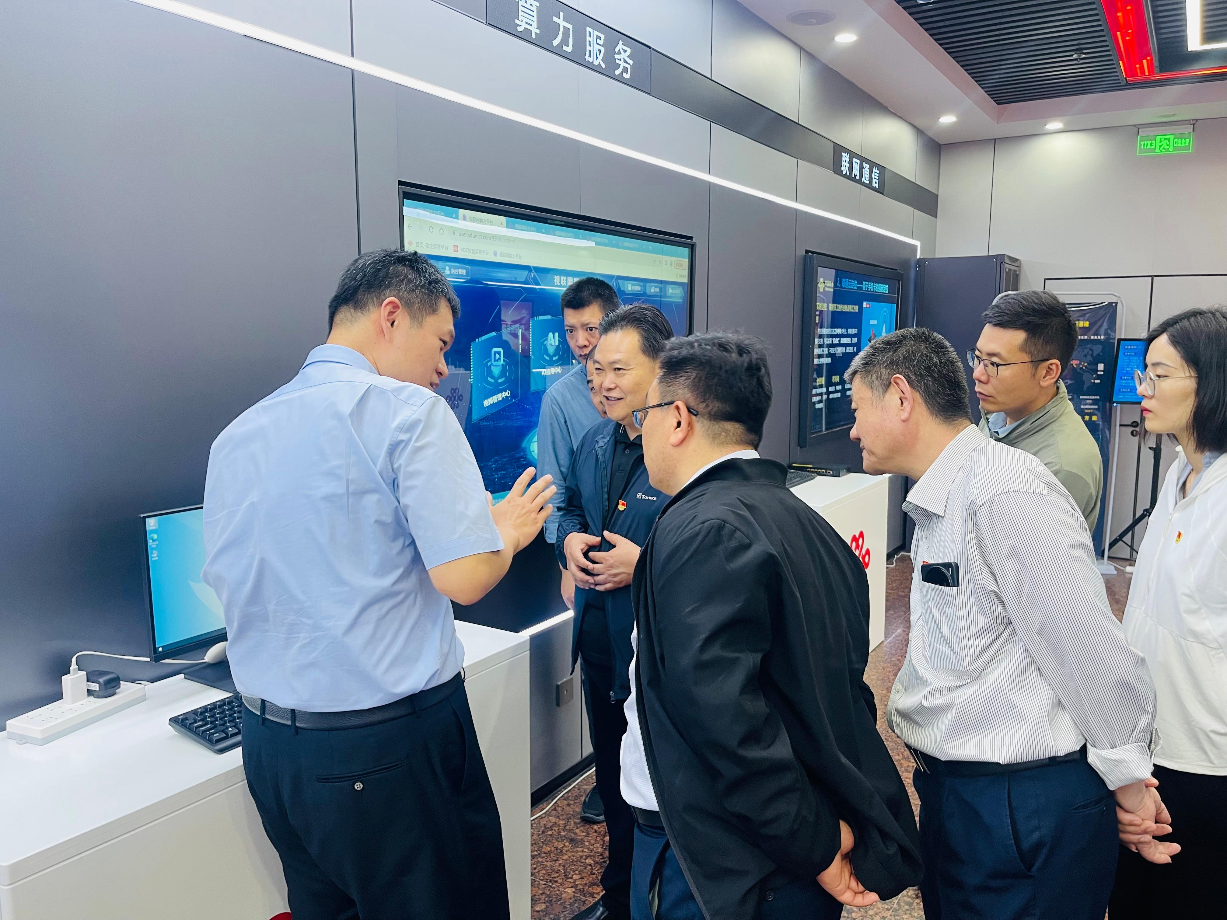 在临沂联通5G创新展厅,党员干部深入了解临沂联通发展历程、网络接入能力、算力服务、网信安全等,以及5G技术从通信到政务、医疗、工业、智能家居等多个领域的应用成果,感受到了5G技术对各行业带来的巨大变革。参观学习中,党员们对5G技术在粮食仓储管理、物资储备管理等方面的潜在应用表现出浓厚兴趣,并与联通公司党员展开热烈讨论。